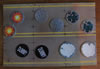 Sand markers are isoscles triangles with the larger sides being 7.5 cm in length and the base being 5.25 cm. Sand markers have to be able to cover 3 lanes in a single space.